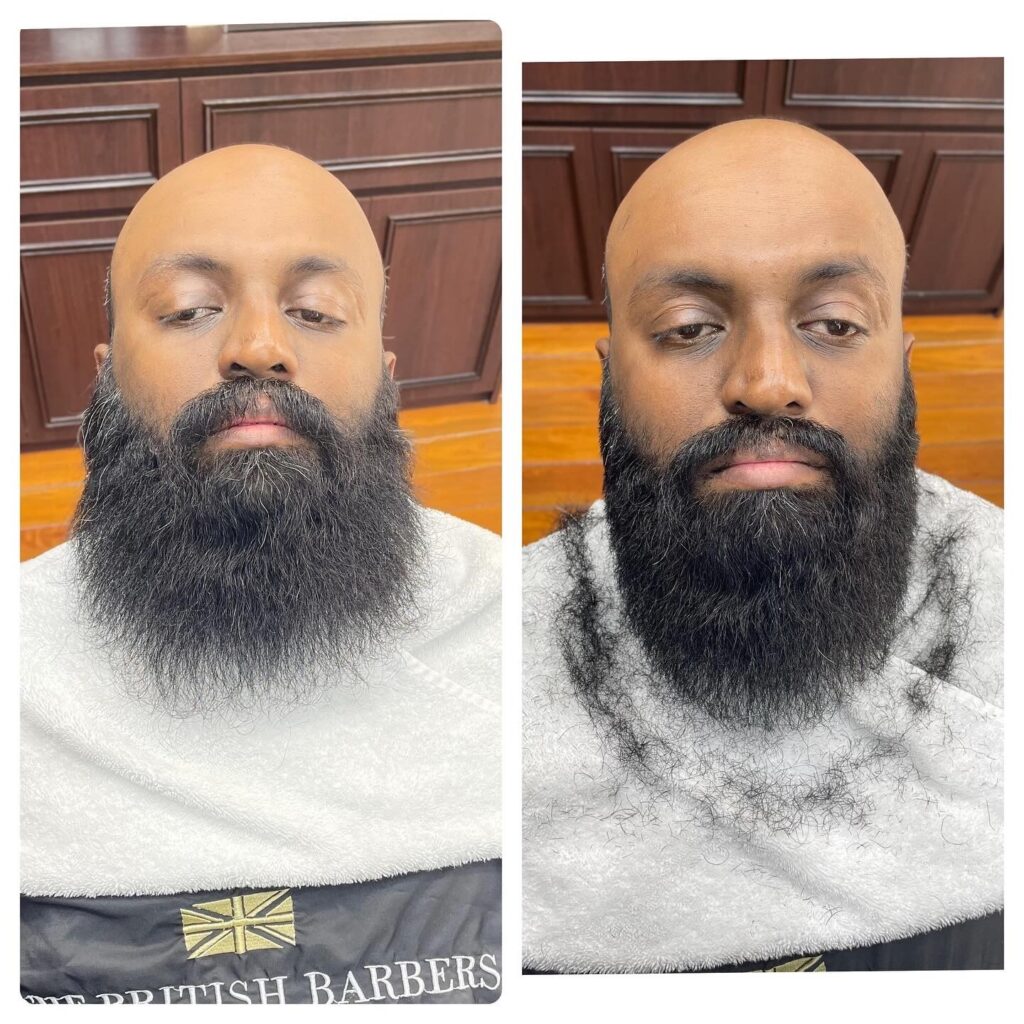 Professional layering makes the biggest difference. At The British Barbers, thinning shears are used to remove bulk while preserving density. The beard remains full, but lighter, neater, and far more comfortable in daily wear.